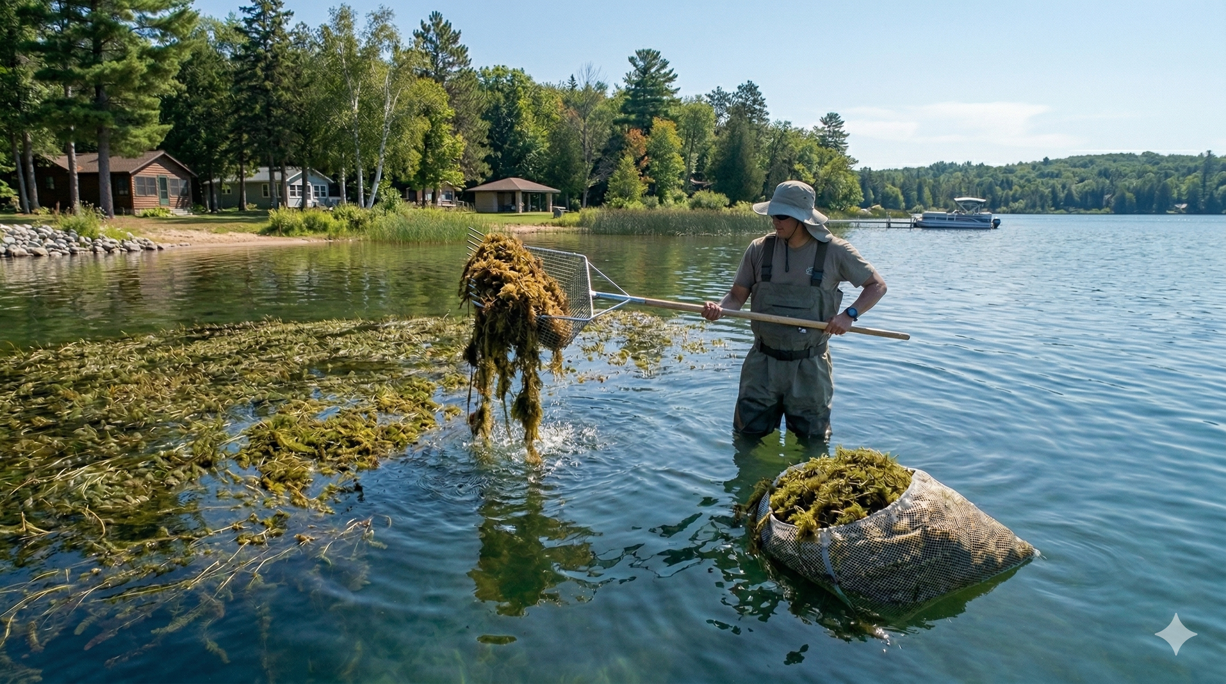 When we looked at the options available to lakefront homeowners, we saw a massive problem: either dump harsh, expensive chemicals into the local ecosystem, or spend your entire weekend doing back-breaking manual labor instead of actually enjoying your boat.